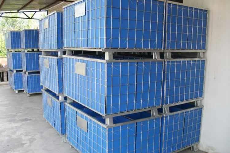 3、空箱堆叠:空箱存放或运输回收时,折叠后再互相堆叠,节省物流本钱,脚柱设计,避免互相压坏变形。