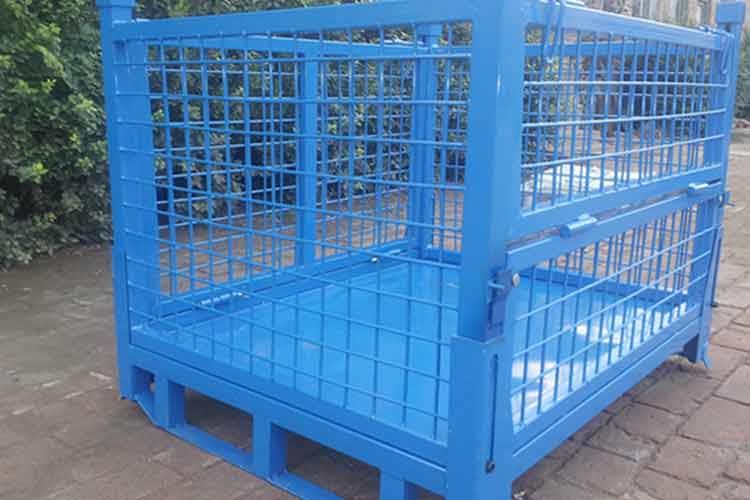 仓储笼的主要原材料是高线拉成的钢丝,一般丝径是5mm,6mm,6.4mm。网片焊接的网目间距一般为50×100,100×100,50×50。仓储笼底部采用U型钢焊接而成,U型钢是冷轧带钢轧机轧制而成,底部四角采用冲压件一次冲制而成。仓储笼采用Q195高线作为原材料,经冷拔成型材。再通过碰焊形成半成品网片。在制作成网片后,可采用镀锌或喷塑进行表面处理(仓储笼大多数采用镀锌处理),表面处理完毕后就可以进行组装,即可制作成成品。